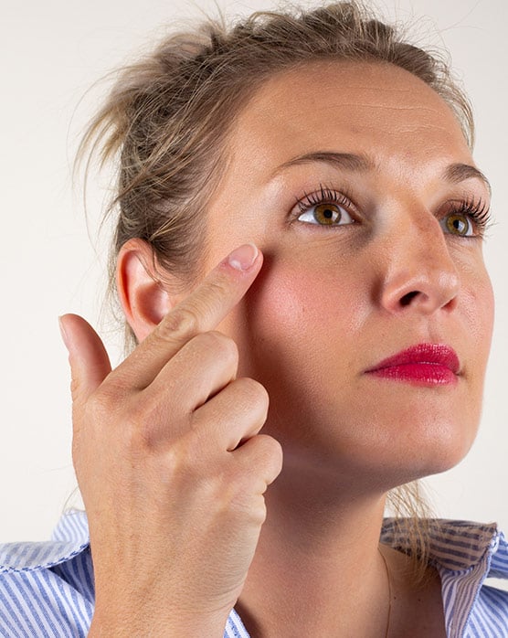 Pat cheeks with excess balm and blend with finger or brush in circular motions.